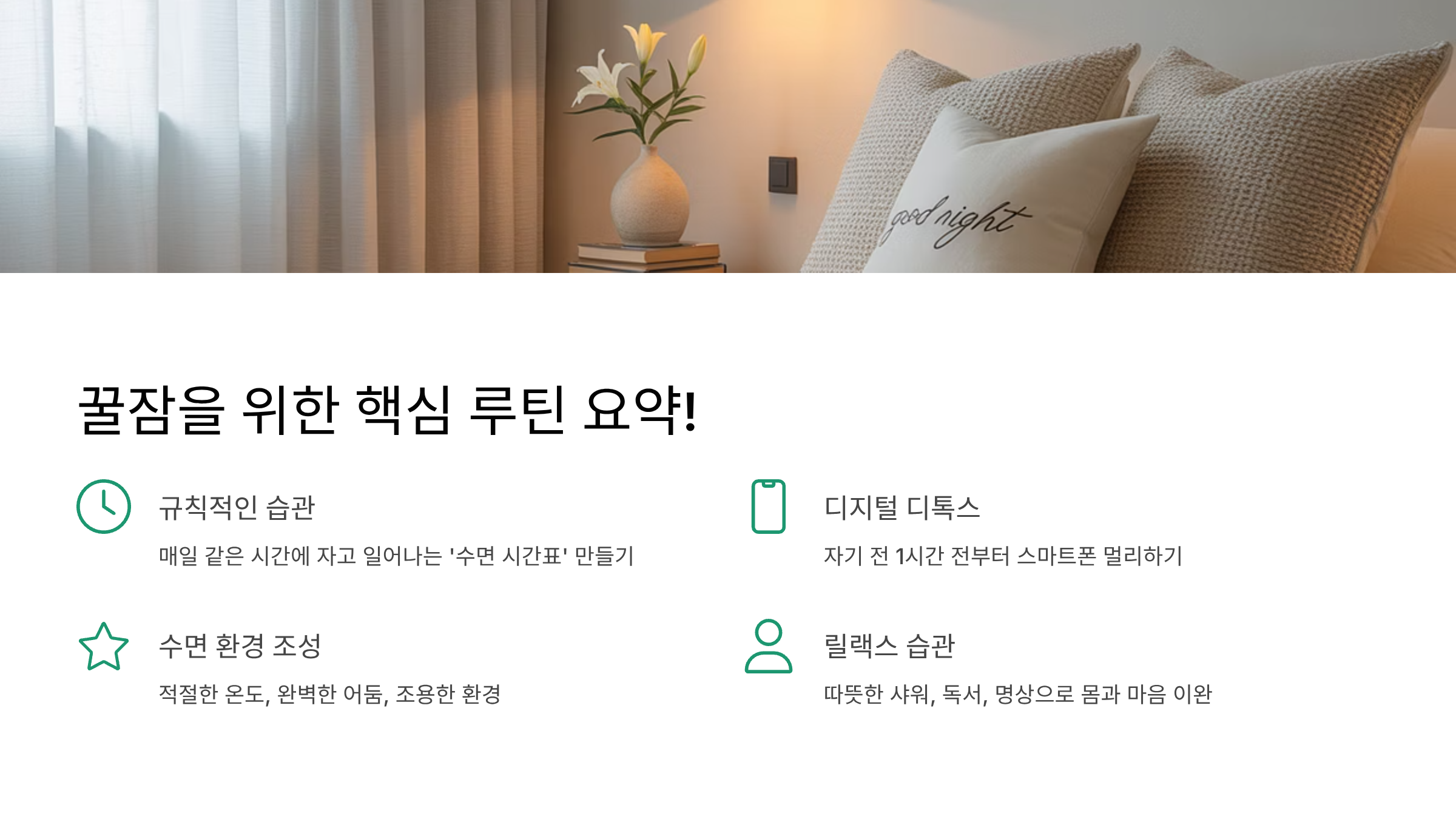 꿀잠을 위한 핵심 루틴 요약!