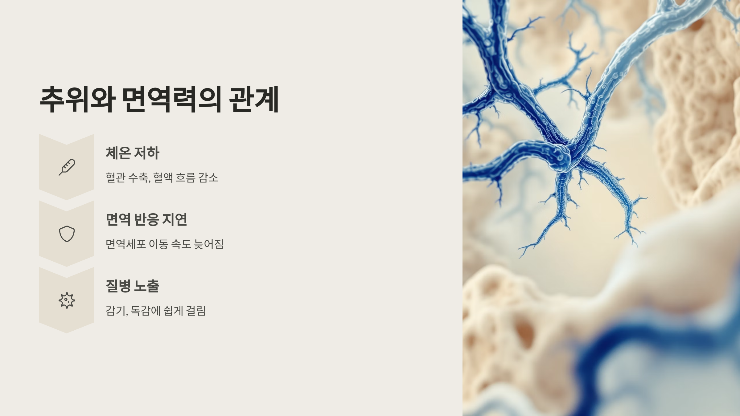 추위는 면역력을 떨어뜨리고 방어 반응을 늦춥니다