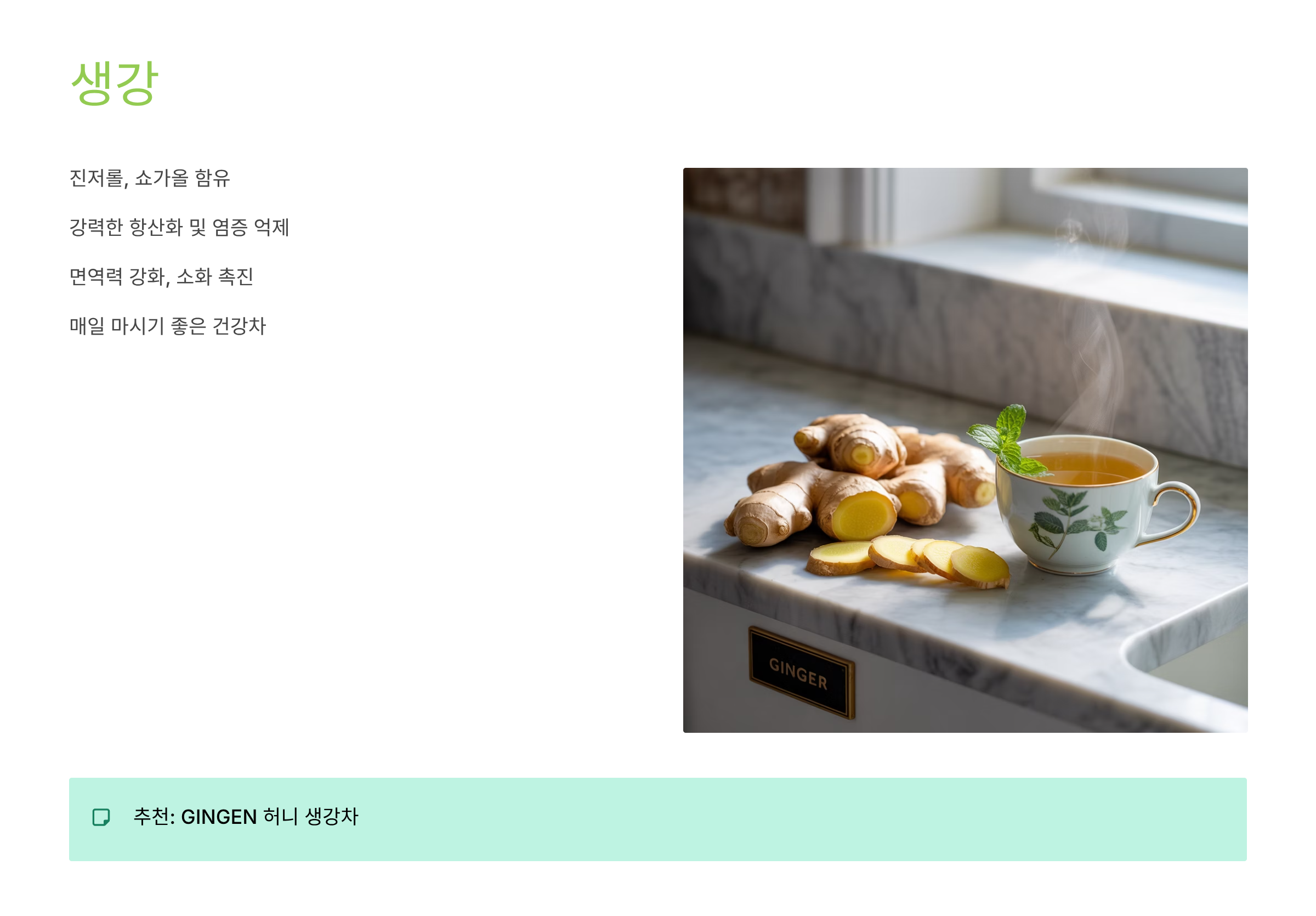 | 생강차 | GINGEN 허니 생강차 | 쿠팡 링크2 |