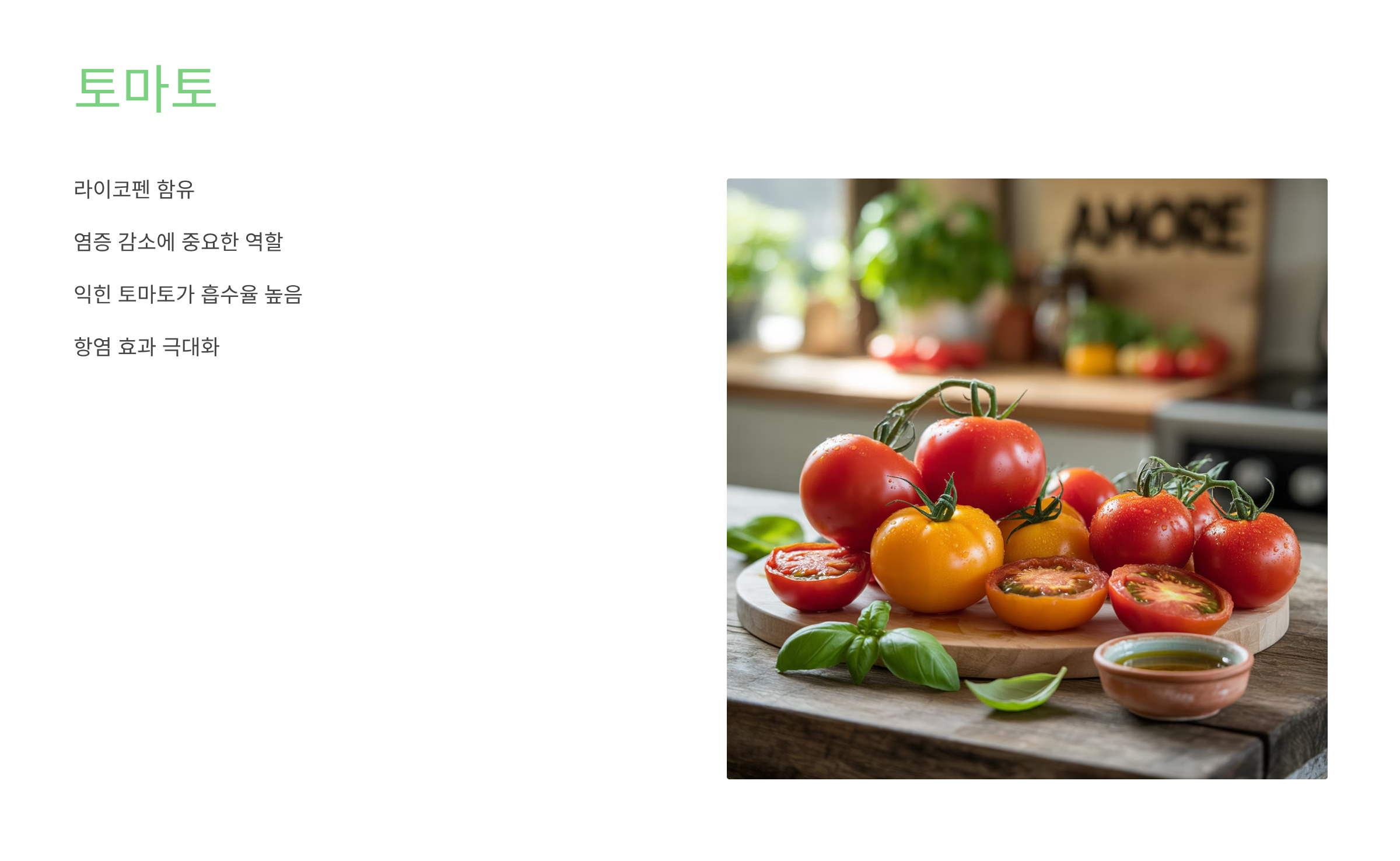 특히 익힌 토마토가 흡수율이 높아 항염 효과가 극대화됩니다.