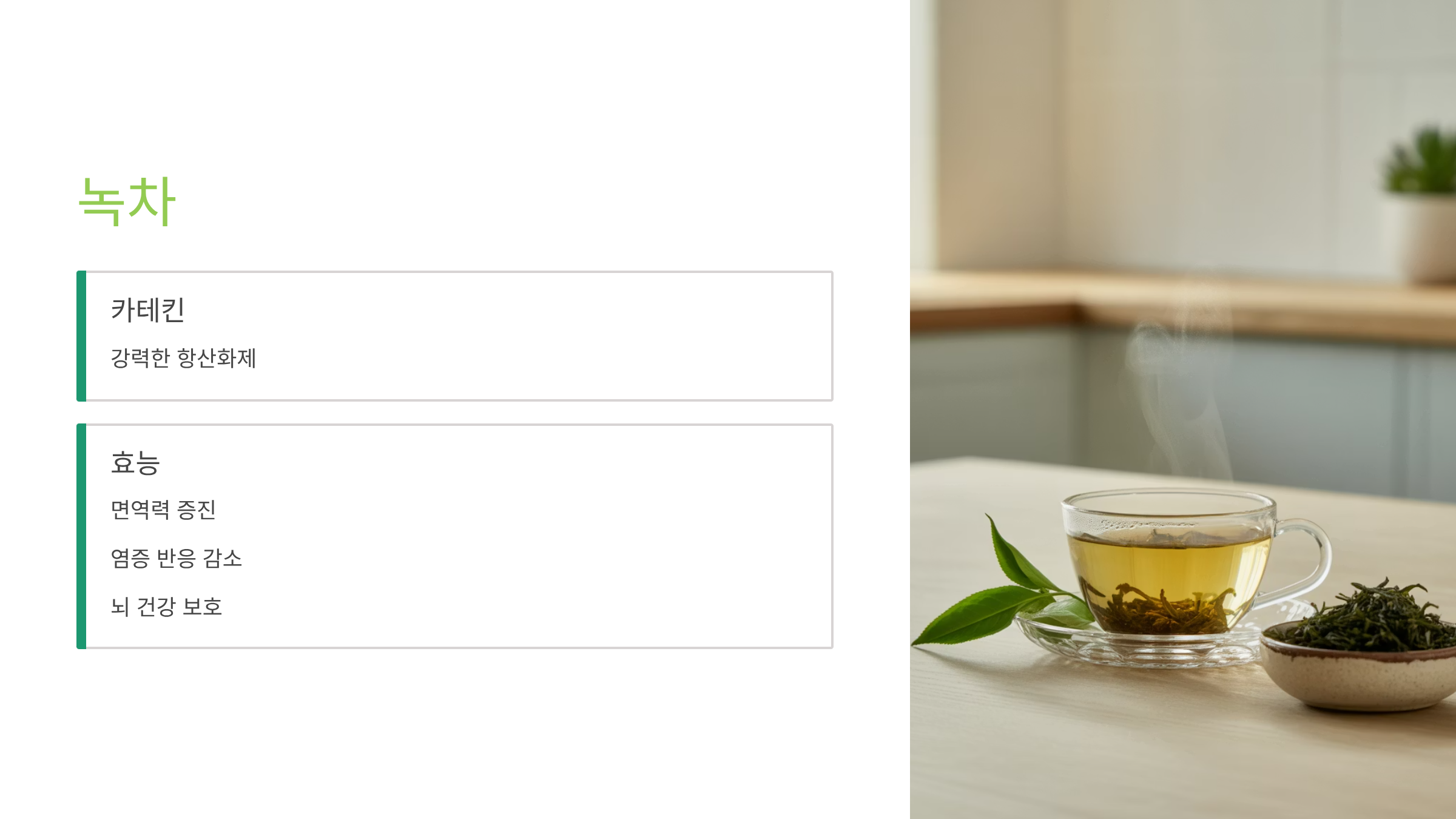 카테킨은 강력한 항산화제이자 면역력 증진 성분입니다.