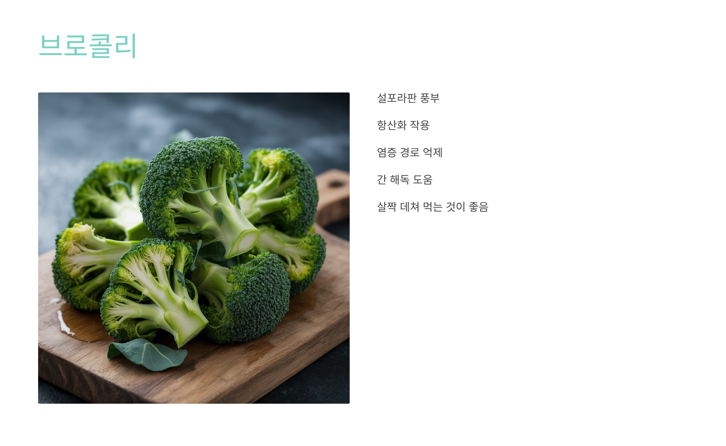 설포라판이라는 파이토케미컬이 풍부하게 들어 있어 항산화 작용과 함께 염증 경로를 억제합니다.
