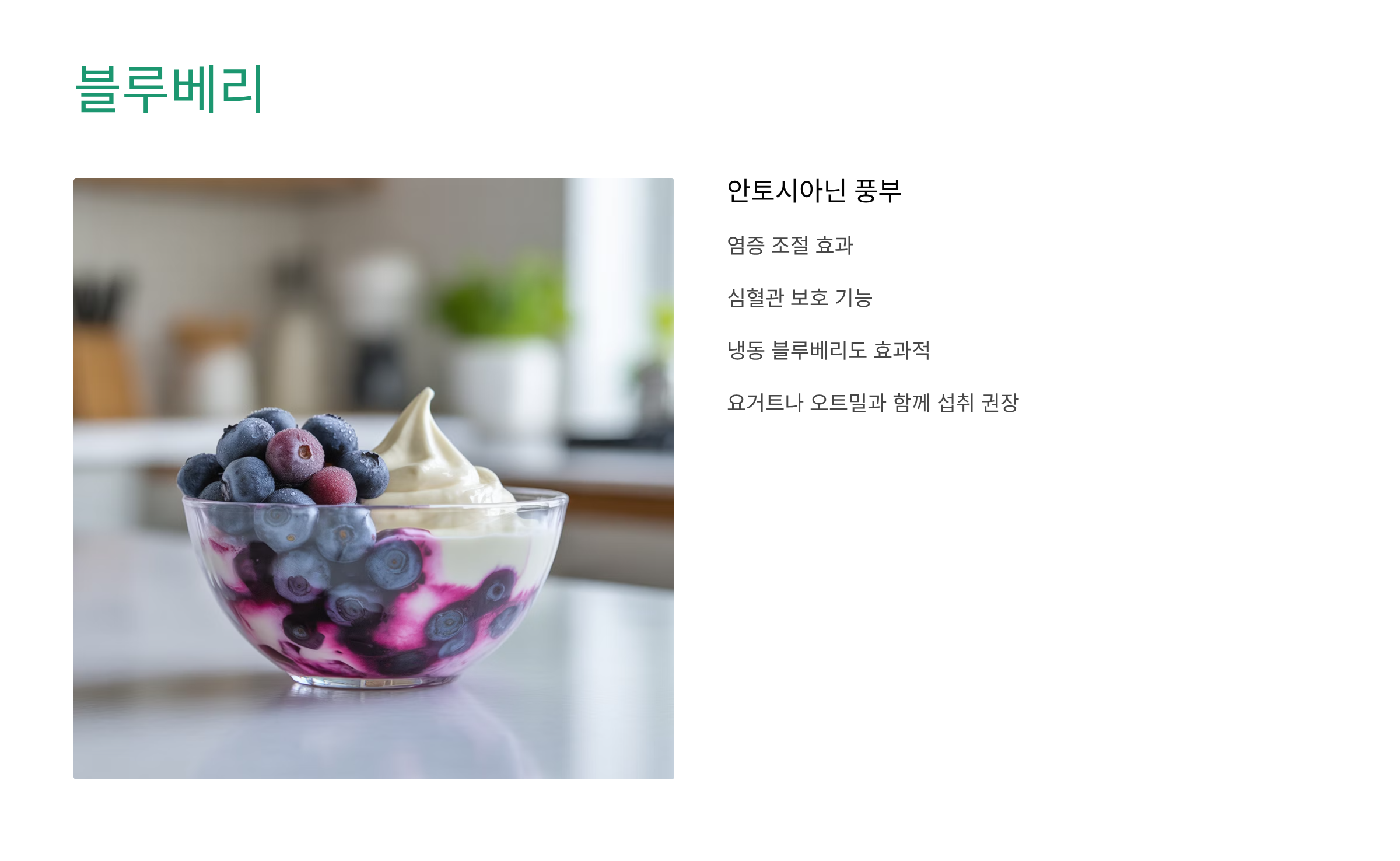 안토시아닌이 풍부한 베리류는 염증 조절과 심혈관 보호에 효과적입니다.